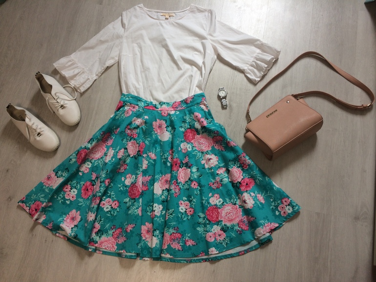12. Ещё такая юбочка у меня есть, давно покупала, но она очень сложная в сочетании...к ней хорошо обычная белая футболка и белая же джинсовая безрукавка...а больше варианты не придумываются...разве что этот:
