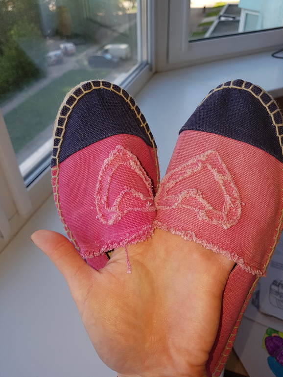 Подскажите,пожалуйста. Купила с большой скидкой эспадрильи, один стоял на витрине,другой в коробке, сильно отличаются по цвету. Свеженький стоит уже два дня на окошке,но пока толку мало (( может у кого есть дельные советы? Стирать страшно (