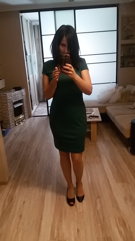 Идти уже сегодня. Платье обычное зеленого цвета, колготки телесные. Погода - лето.