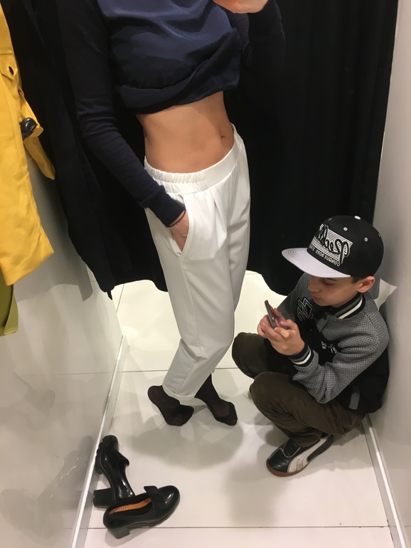 А вот брюки за которыми я шла, кончились(((( я хотела взять, как мои синие, но белого цвета. Но остался один размер s. И он мне велик(((