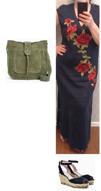босоножки хорошо, а вот сумка по размеру немного большая к платью. немного бы по меньше, а по стилистике хорошо.