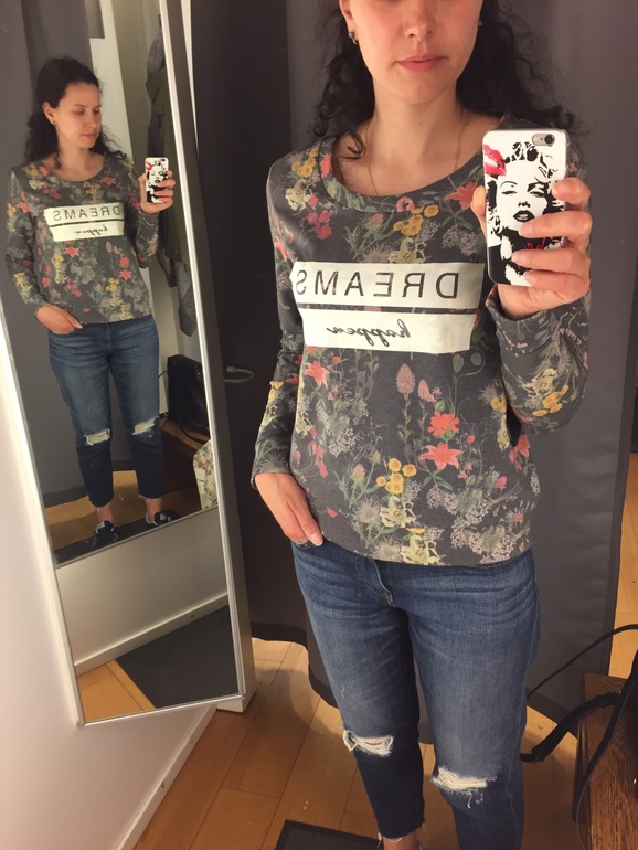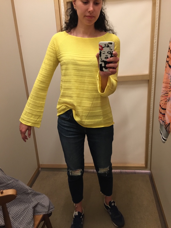 Ну и хотела к серому жилету в сочетании с темно-синими джинсами найти желтую кофточку.. но не вышло.. то рукав короткий, то модель не подходящая под жилет.. примерила в Бенетоне для сочетания цветов, понравилось но модель нет, будем искать))