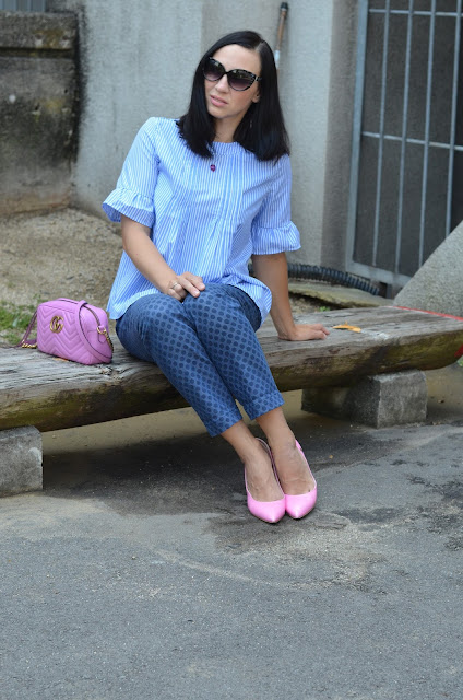 И еще одни образ с этой блузочкой сразу покажу, так как мы пошли гулять, и прогулка обещала быть длительной, решила обуть плоский ход, а заодно и шляпу от солнца.