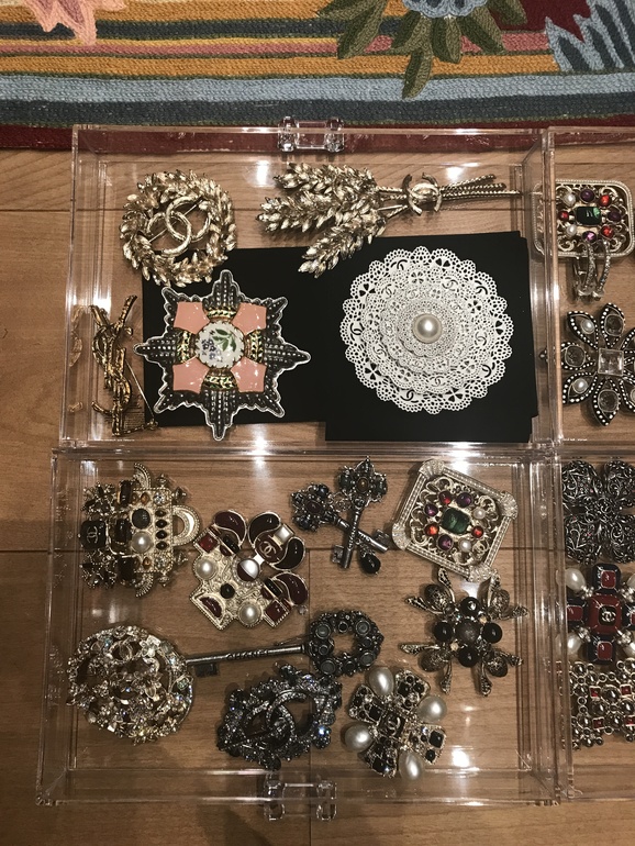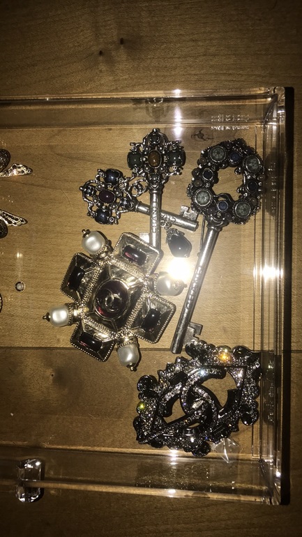 АксессуарыМоя первая брошь была куплена в Дубае году в 2013, годом позже мы с Жендосом безуспешно прошерстили все амстердамские лужи дождливым вечером в поисках брошки, предварительно уничтожив 12 десертов на двоих(примерно с тех пор она веган), попутно разглядывая красные фонари, страшных баб и обсуждая подарок ее 12-летней дочке (В итоге решили вместо собаки купить диван, диван всегда полезнее в хозяйстве). Тем вечером повезло явно не мне и не имениннице). Это была моя самая любимая, искала на всех просторах интернета и нашла позже меньшего размера где-то в Дубае. Страдаю до сих пор. Бижутерия у шанель ни разу не имеет отношения к ювелирке, но в ней есть само очарование, искусная работа. Когда задумываешься как несколько людей творят это(хотя дизайны лижут отовсюду, например в последней коллекции с ключами... интересно что думает по этому поводу Ватикан). Некоторые броши переиздаются спустя десятки десятков лет, например как которая рядом с консервной банкой с икрой(тоже потерянной и таки найденной на ебэе). Практически все обладают значительным весом и плохой застежкой, о говнокачестве шанель можно говорить часами, вспоминая лужи... но все таки они остаются одними из самых любимых и радующих взор вещей. Между ними затерялся сен лоран, но это было помутнение. Классические монограммы и пластик мне совсем не нравятся, но устоять периодически не могу. Гида по брошам к счастью для моей кредитки не существует)