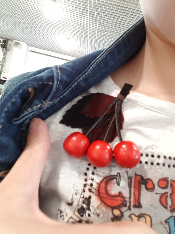Считаю,что на футболке брошка лишняя. Ну или хотя бы на джинсовку её переколоть.