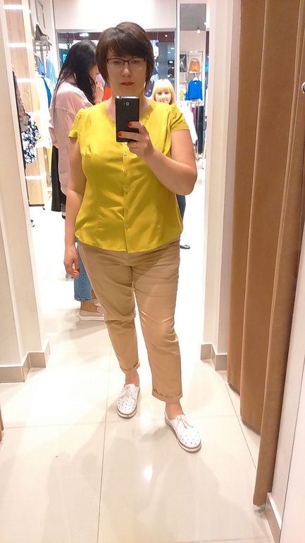 ПосоветуйтеСегодня поехала сдавать розовую блузу из вчерашнего поста и примерила другую.Но сомневаюсь, брать пока не стала:
