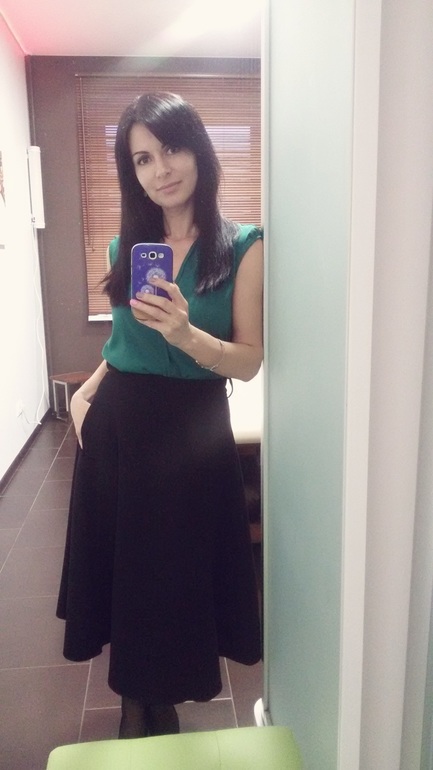 Юбку вообще эту редко ношу,во-первых потому что черная,во-вторых напоминаю себе в ней монахиню. Ну уж покажусь. И обязательно прикуплю цветную такого фасона.