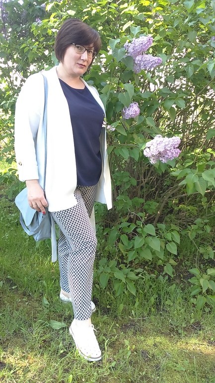 Всегда почему-то считала, что подобная расцветка брюк должна полнить, но Вам очень хорошо)) надо тоже померить