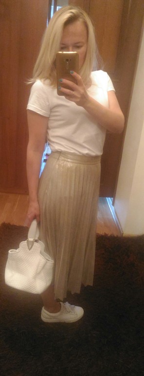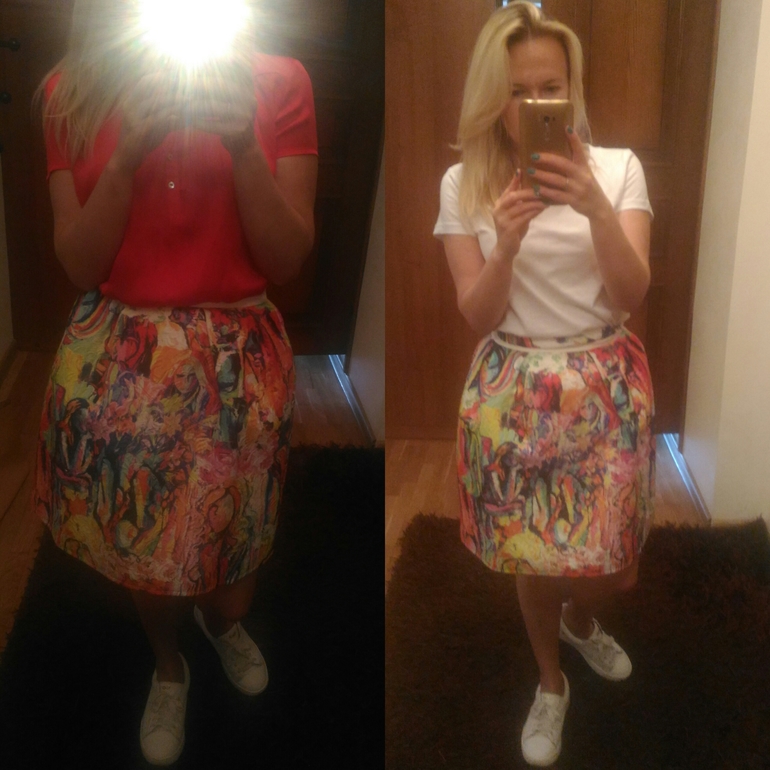 Ношу в основном с джинсами или светлыми брюками. Решила померить с юбкой.