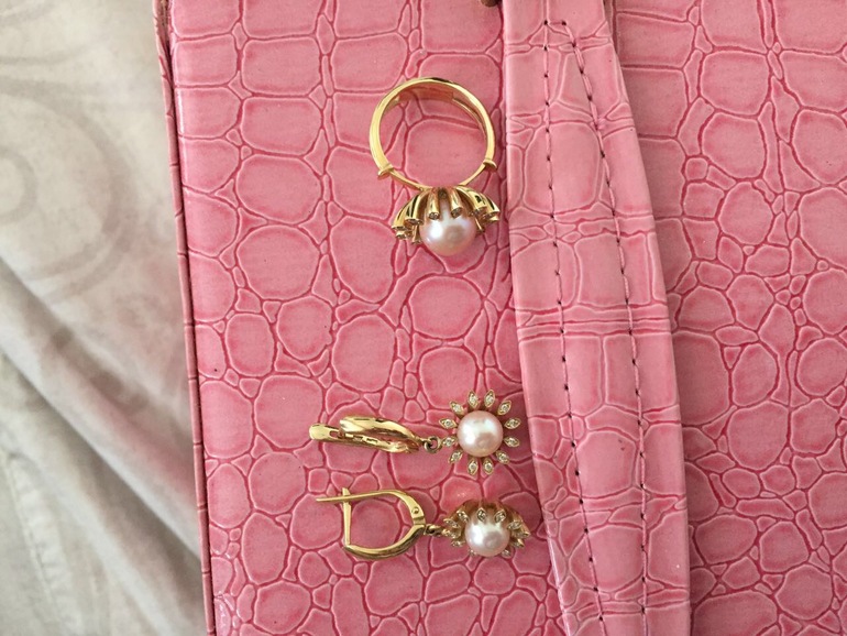 Так как обручальное кольцо тоже желтое золото, наверное будет гармонично.. но вот по форме сомневаюсь..жемчуг бежево-розово-сиреневый.. может в тон сделать маникюр и будет ок? А то что-то ничего бюджетного подобрать купить не могу, а дорогое покупать не время сейчас..