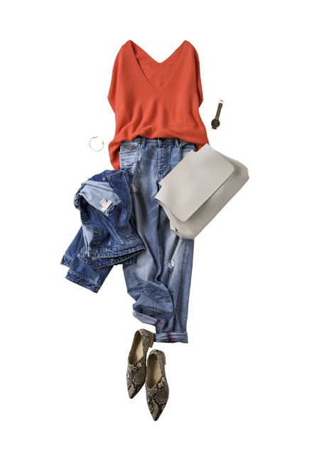 И так, за основу берем (как не удивительно) вещи из масс-маркета, цена не превышает 100 долларов за вещь. 2 топа, одна юбка, двое брюк и джинсовая куртка и составляем из этого 7 комплектов.