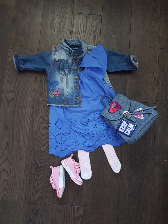 Колготы, платье и джинсовка это Next, ботинки это мне девочка знакомая подарила step by step, а рюкзак и сумка даже не знаю ) купила в маленьком магазинчике