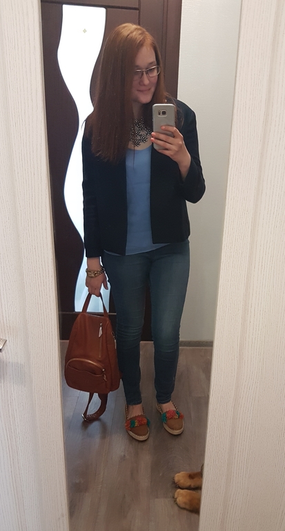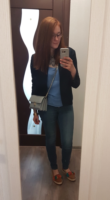 По хорошему, туфли, согласна, но и так вполне. А ты не пробовала сумочку просто на плечо? Ты ж вроде плойку покупала? Не выставляла здесь кудри?