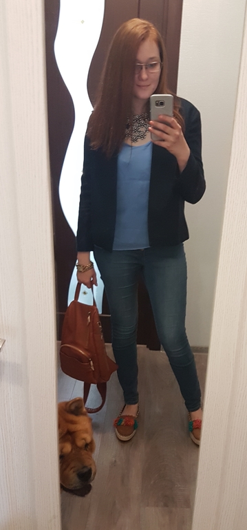 С прямыми тебе хорошо! Я не к этому про кудри))) Просто вспомнила, что ты плойку брала ;) Колье с этой обувью спорно, кмк, если без колье, то с рюкзачком здорово!;)