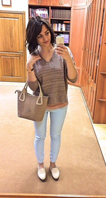 Первый образ очень понравился - крой джемпера, и цвет джинсов, и все вместе))