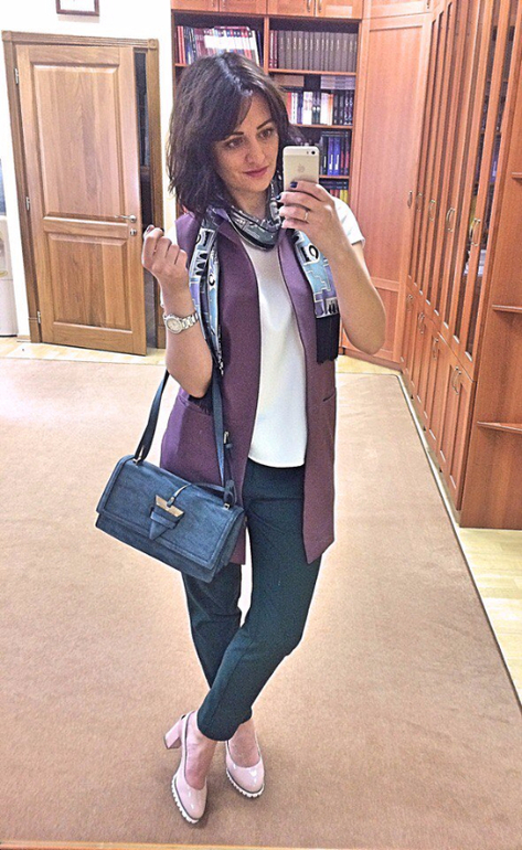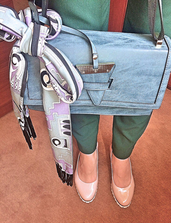 Симпатично так, и туфельки и сумка)) на ранних фото сумка темно синей выглядела, а сейчас голубая))