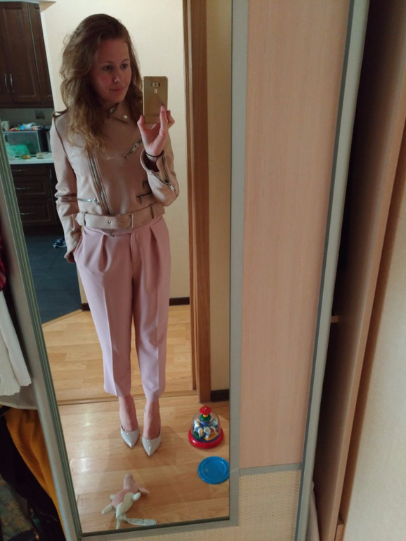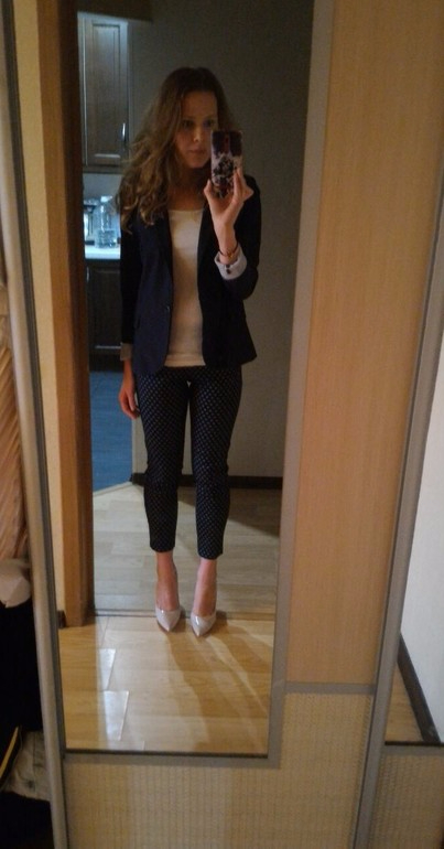 4. все-таки купила их, на размер меньше, еду на машине, поэтому могу себе позволить безопасно зайти в них в старый класс. шелковый кофейный топ интимиссими под куртку