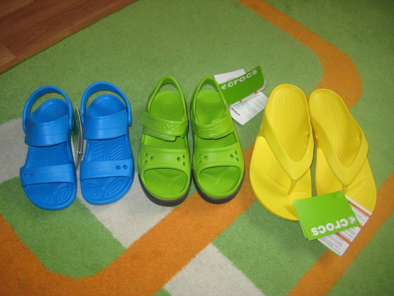 обычные Crocs, в этом году солнечного желтого цвета (на фото мои и сына)