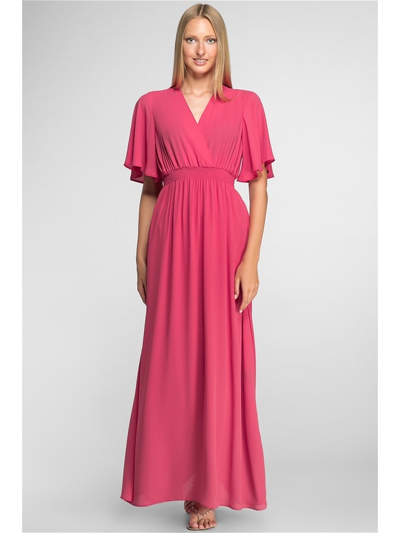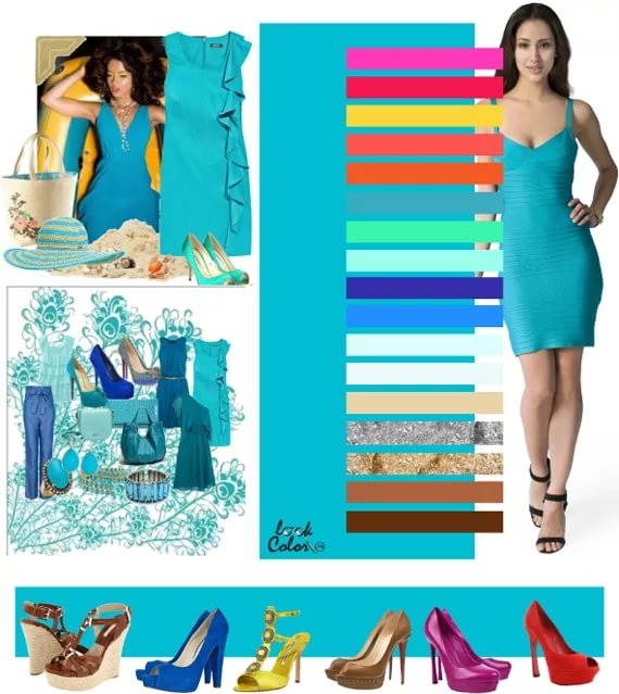 Бледно-розовые цвета, коралл, жёлтый, мята. Т.е. тёплые. Почему-то сразу увидела здесь жёлтые лодочки и яркий клатч. Украшение можно на руку. На шею поискать в вышеуказанных тонах род вырез платья. Хотя он сам по себе ярко смотрится.