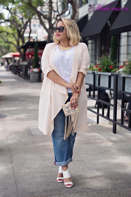 Шорты, топ и рубашка длинная. Она вытягивает фигуру. Либо юбку в пол и блузу