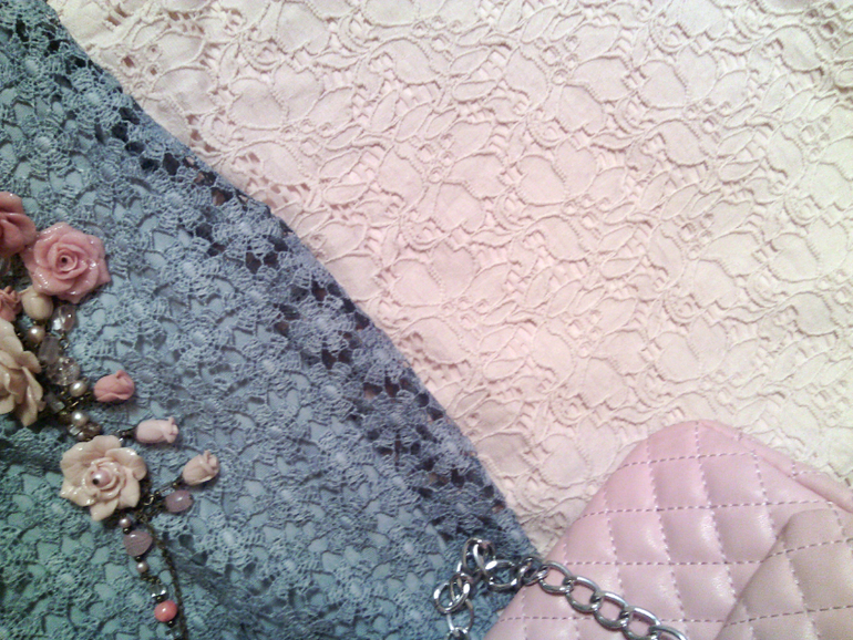 Кружево хлопок. Трикотаж - вискоза, и смесовый хлопок. Не особо мнется.