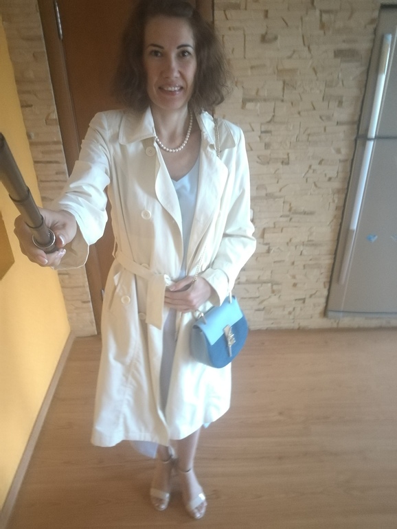 Вы такая милая, зачем вас критиковать? Все отлично, плащ не смущает.