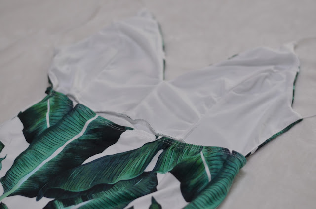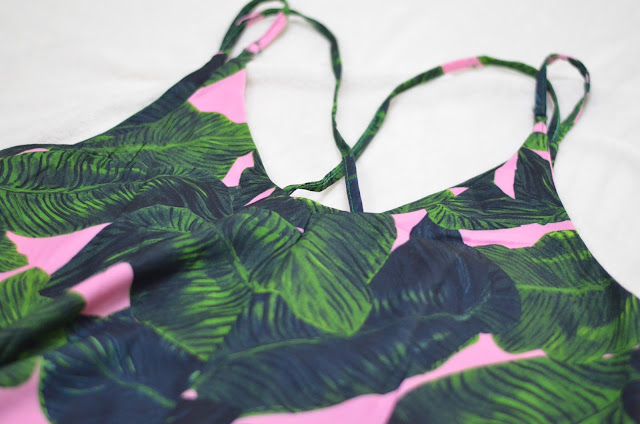 4. Plunge Neckline Tropical Print Backless Fitted Dress