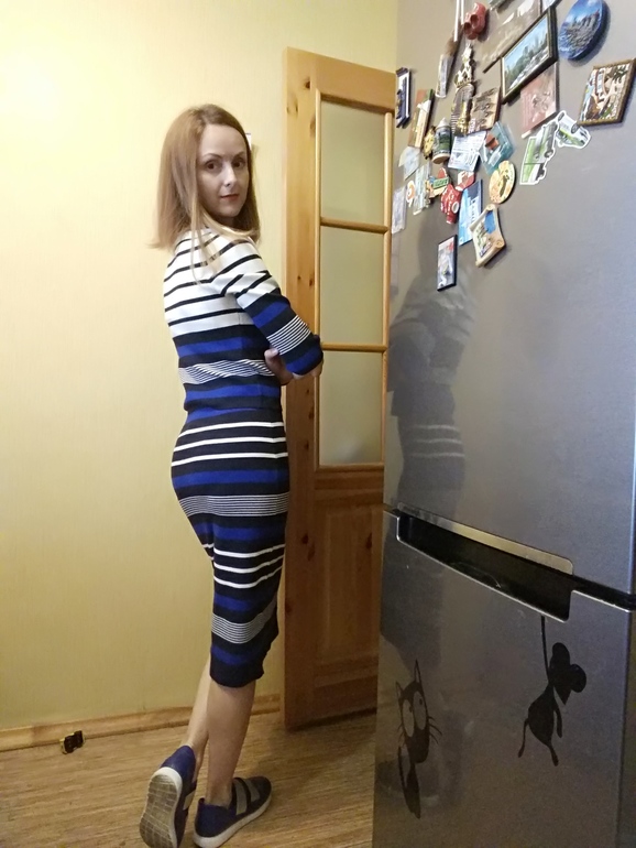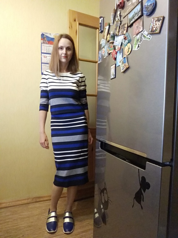 Спасибо! Я уже в этот наряд влюбилась, пышная если встретится, ради интереса примерю. Тем более кофта теперь есть к синей юбке... Но надо ли мне столько синего?