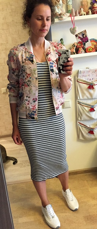Ну и на платье попробовала накинуть)) но наверное перебор и полоска и цветы))