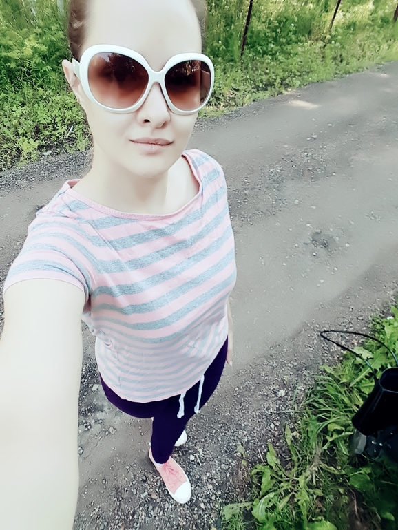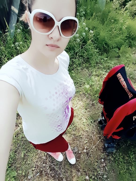 На прогулкеВ общем отдахаем душой и немного телом: работы много. Модности, ясен пень, ноль, но по приколу склеиваю одежду хоть по цветам)) Дачный стиль (на эту тему есть одна фото-идея. Мужа только дождусь, а то снимать надо на нормальную зеркалку)