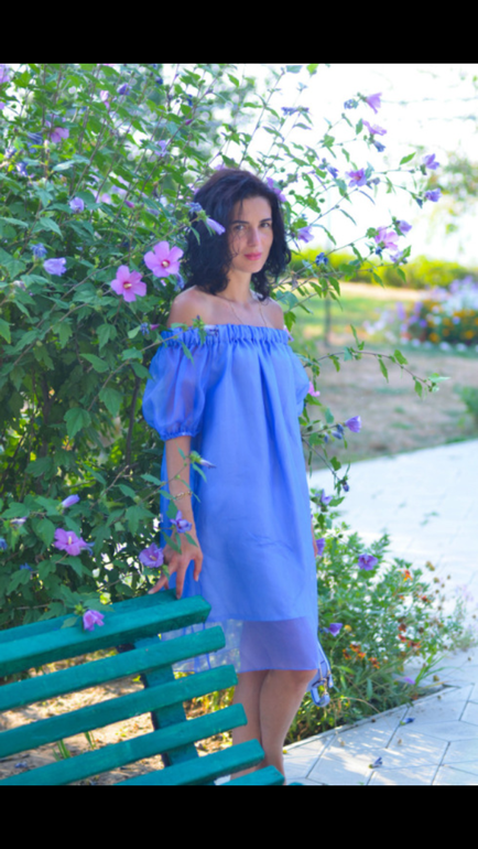 Это платье я шила из шелковый органзы и подкладка тоже шелк. Я покупала небольшой отрез, поэтому вышло не дорого. А ощущения в нём.... да никаких ощущений на самом деле.. как будто голая идешь)