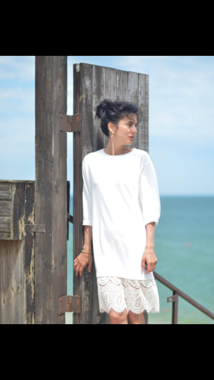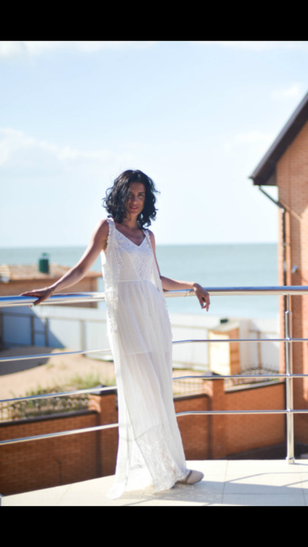 Белый сарафан. Не собиралась покупать, но как это часто бывает))) зашла в Лайм, увидела, купила))). Он был ужаааасно длинный мне. Я его приготовила нести в ателье. Но сначала постирала. Потом прихожу к портнихе с ним, меряю... а он прям тютелька в тютельку по мне))). При стирке сел!))))