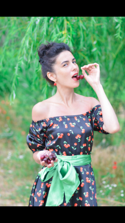 Ну и вишенки) То же самое. Материал на вечер). Ну лично я не могу в таком летом ходить. Перестала жару переносить совсем. Раньше жарилась лежала на 30 градусах, еще могла и маслом себя каким- нибудь растереть, для загара🙈😂🙈А теперь, зонтик, шляпа, очки, прохладные одежды и в тенек😳😳😳Старость?))) Не знаю. Ну душно мне в общем. Для меня оптимальная погода сейчас в Москве, это 25. А вот на море, конечно и 35 отлично. В том году на юге, испытала на себе 37 градусов и даже не почувствовала. Что не могло не радовать). А то уж решила, что всё.... пенсия на горизонте, как говорится))))