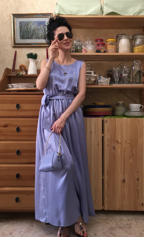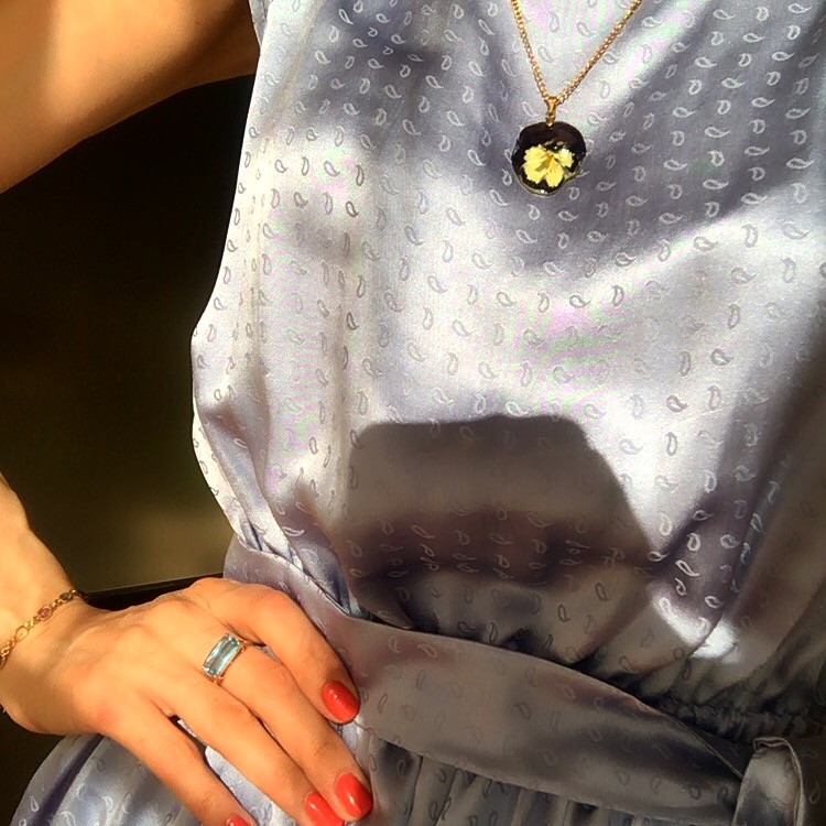 Купила шёлк по скидке. Со мной была мама и сказала, что это расцветка для подкладки🙈😂 и была недовольна моим выбором... и я уже почти даже ушла.... но вспомнила, что всё таки всегда надо слушать себя. У мамы есть вкус... но свой. Мы же всегда всё "примеряем" на себя. Поэтому здесь в ПиМе чаще всего ошибочные советы, именно не после покупки, а ДО! Человек спрашивает "купить ли?" И все пишут нееееет, фууууу. А человек покупает, показывает и все пишут "оооо, круто". Поэтому я всё таки послушалась себя. И не жалею. Было это зимой, я была уже глубоко беременна, и шелк этот был в остатках, и очень дёшево. Так как уже поступали новые коллекции. Конечно же.... мне хотелось купить гораздо интереснее ткань, там был огромный выбор, но.... решила, что пока и этот сойдет. Сшили мне его буквально на днях. Фасон самый простой, талия на резинке, сверху поясок. И сарафан весь такой простой ... удобный, без подчеркивания чего либо.... и только ткань его "спасает";))))чтоб не быть СЛИШКОМ ПРОСТЫМ. К нему идеально подошла подвеска, которую мне подарила чудесная девушка с ББ, Элиана, которая куда- то пропала(((
