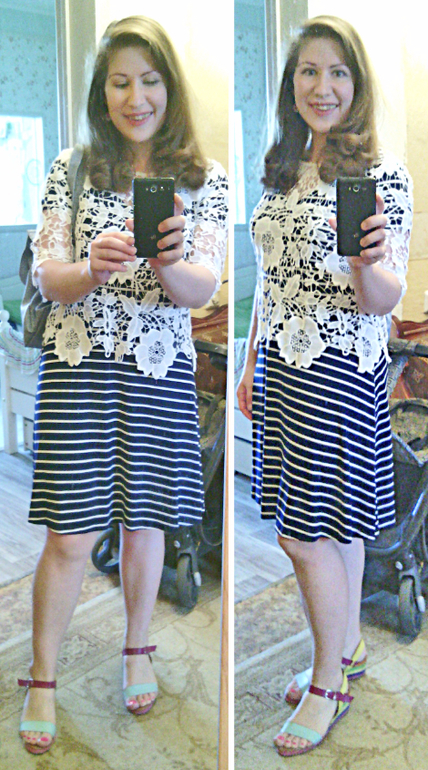 Ну, а это мое вчерашнее полосато-цветочно-кружевное))) . Пожертвовав талией, облегчаю бедра)).