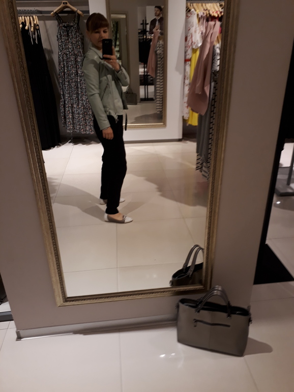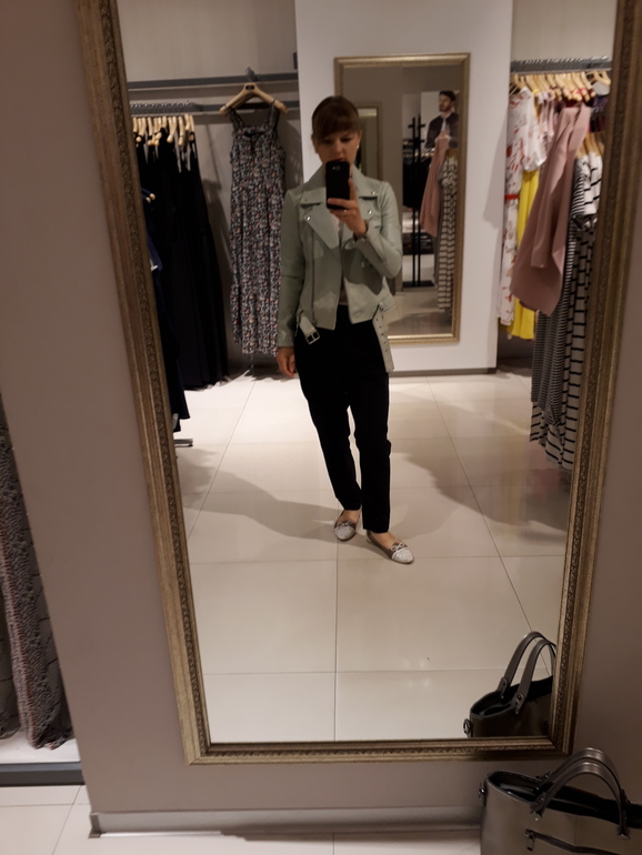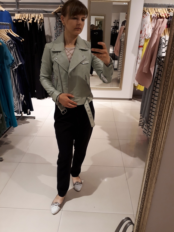 ПримерочнаяДевочки привет, терзаюсь второй день выбором покупать ли косуху или все же не моя, вроде села неплохо и цена отличная для кожи, но вот цвет, на сколько универсален большой вопрос, он такой нежно мятный что ли