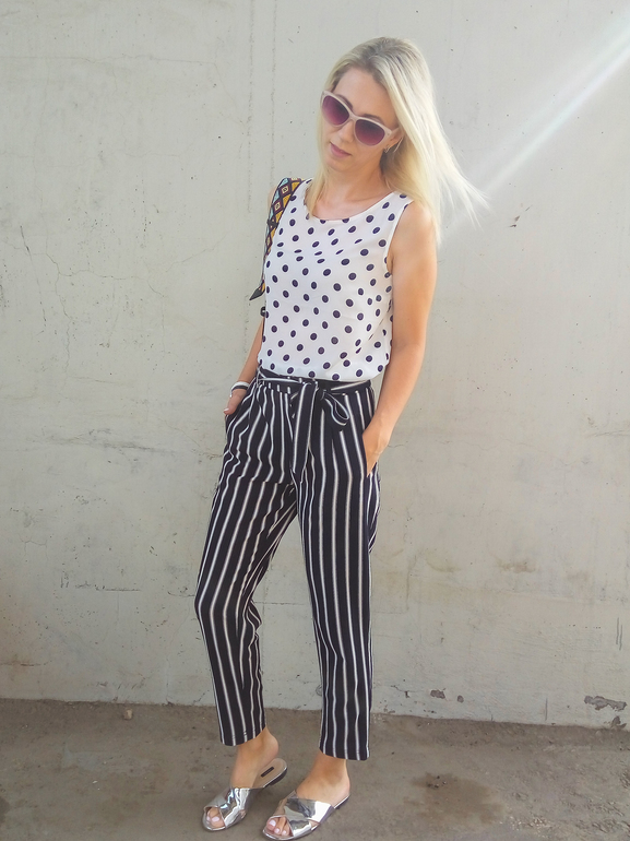 На прогулкеПривет девочки,мой любимый,да еще и трендовый горох, в необычном сочетании мне безумно понравился, хотя я предпочитаю более спокойные и однотонные вещи