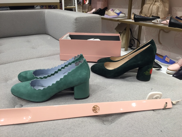 Туфли замечательные, я за темные, с розой, потому что они универсальнее. Подскажите, пожалуйста, бренд мятных
