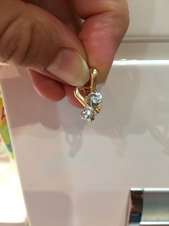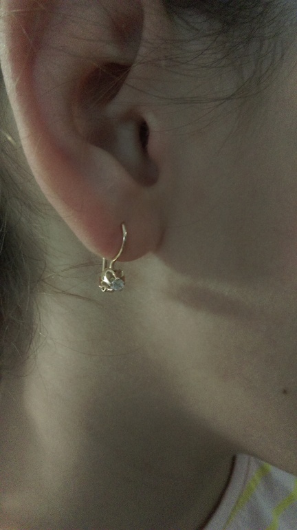 Старшей купили серьги с английским замочком, в итоге потеряли одну серьгу, замочки какие слабые были часто раскрывались сами, купили ещё одни, точно такие как были и та же песня. теперь купили гвоздики, именно с винтиком чтобы застежка была, я очень довольна! Не цепляются, не расстёгиваются и ребёнку нравится! Младшей сразу гвоздики буду брать, неделю назад ушки прокололи, но пока стоят специальные, которыми врач прокол делает, тоже симпатичные очень!