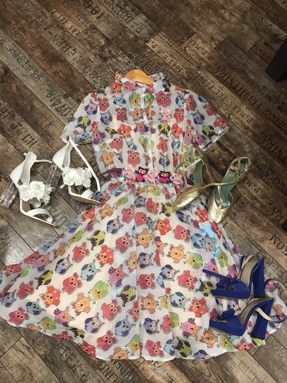 Влюбилась в третье: голубое с сердечками. Особенно с красными босоножками)