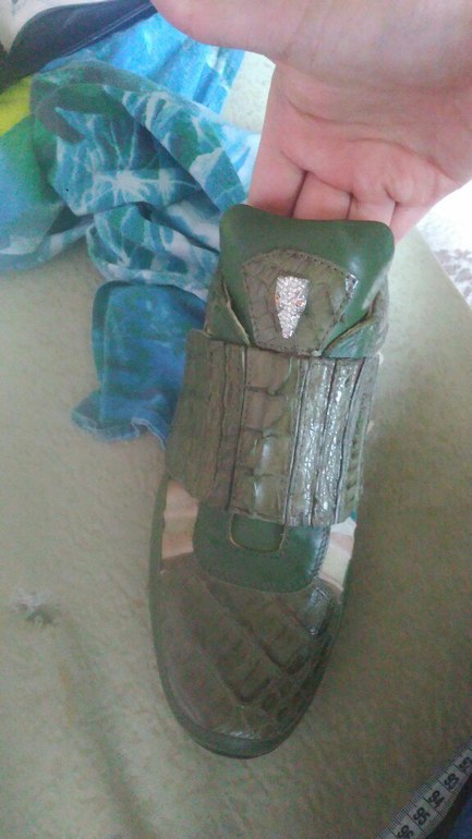 ОбувьГода 2 назад мне подарили обувь,но я такую не ношу лежит уже в дальнем шкафчике и пылится,чистая,хорошая.Как говрили из натуральеной крокодиловой кожи,и тут я хочу продать ее ,но незнаю по какой цене.Хотелось бы прежде чем продать ее узнать у людей знающих какова ее цена?И есть ли в Москве где можно узнать цену этой обуви?Знаю что крокодиловая кожа очень дорогая и не хотелось бы ее продавать за копейки.Не подскажите адреса ,контакты где с таким обращаются или может кто -нибудь при виде картинок))))))скажет приблизительную цену