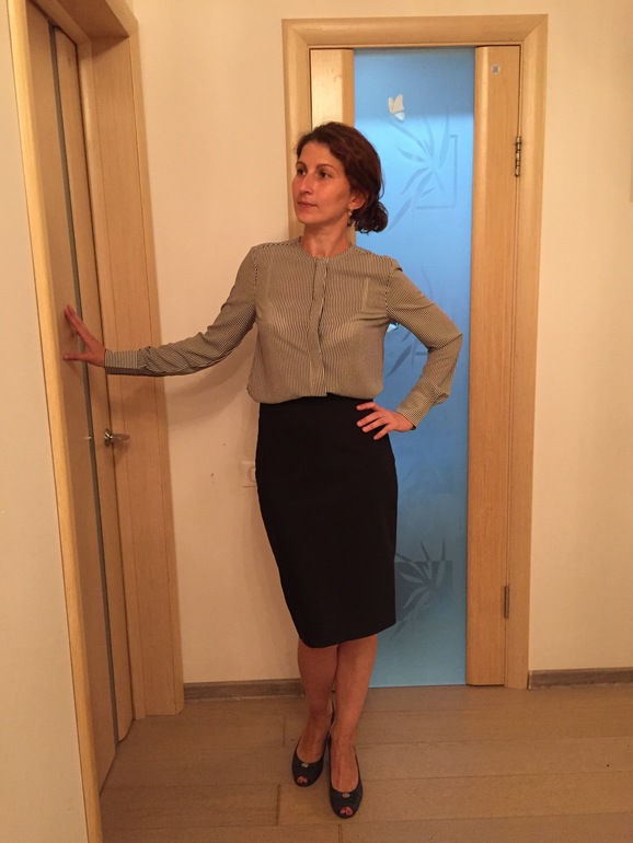 Блузку полосатую сдать, не прилично в таком ходить. Если уж на фото все видно, вживую ещё хуже.