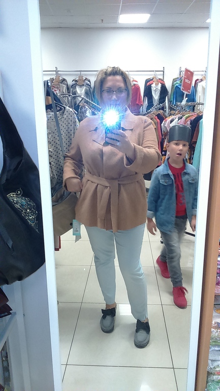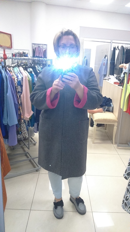 На фото мне понравилось на вас: бежевый жакет ( пояс подчеркнул талию) и серое пальто с розовыми отворотами на рукавах ( стройнит)