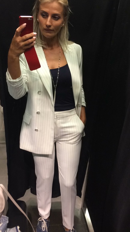 Костюмчик на вас-прям АХ!!! Очень вам идёт))) Полоска на костюме не очень яркая, думаю нестыковки в глаза не должны бросаться.
