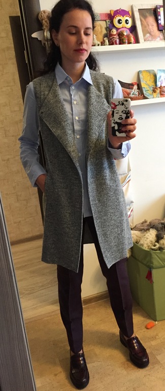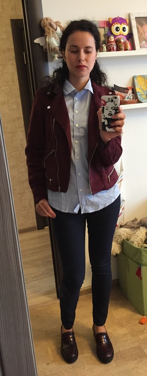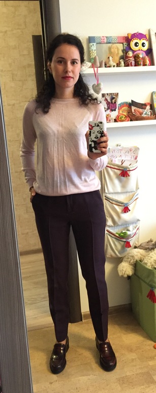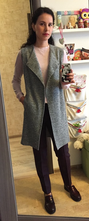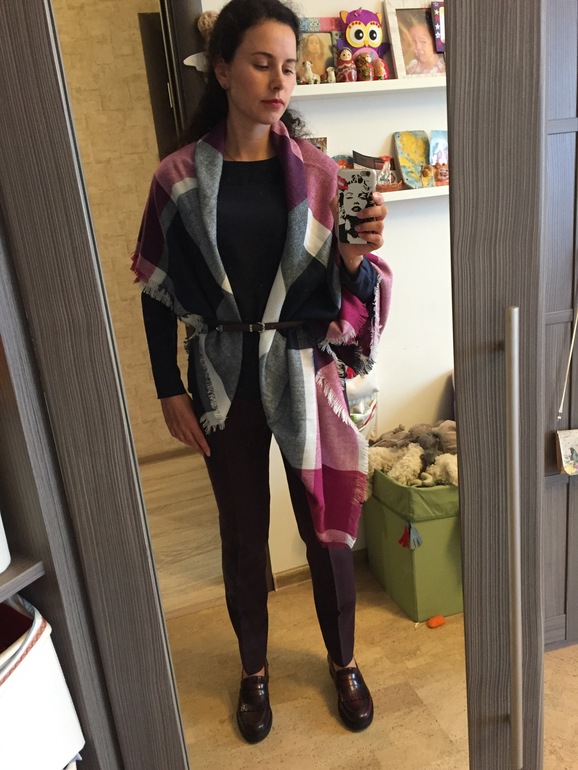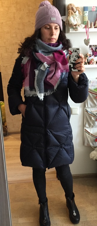 В ближайших планах докупить белую рубашку и молочный свитер оверсайз с глубоким вырезом, зимние ботинки подходящие под прямые брюки, что-то на голову под зеленое пальто, шапку розовую под синий пуховик, а кое что из аксов с али уже в пути ко мне)