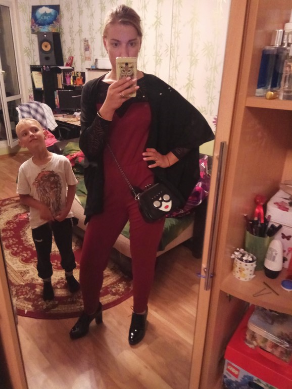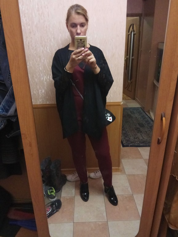 У меня комбез сомнения вызывает (Честно сказать, он у меня и на фото из магазина сомнения вызывал), а вот пончо, сумочка и обувь вполне нравятся.