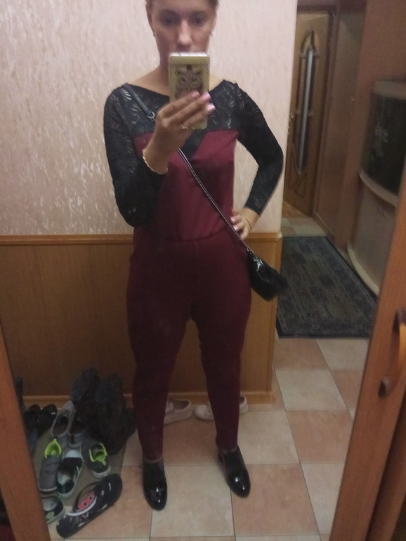 Комбез и модель не украшал и Вас не украсил совсем. Внизу форма брюк ужасная, вверху грубая форма выреза и дешевое кружево, на талии тянет, Вы внизу выглядите как пупс в ползунках, и в целом смотрится не привлекательно ни разу. Извините((