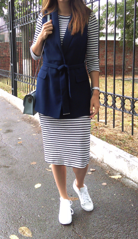 Отличный образ, я фанат полоски)) кроссы ношу с х/б следками или низкими носочками, последний раз покупала в спортмастере, шнурки прячу)