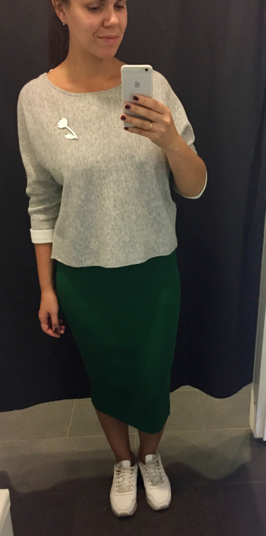 Привет! Тебе очень здорово) я вот сразу сказала когда ты ещё серую мерила надо брать однозначно. У меня есть такое платье лапша и юбочка серая, ношу с удовольствием. Ну вот дорогая, теперь и я захотела зеленую😂😂😂 интересно ее реально будет подрезать? Кстати видела я эти плиссированные юбки из новой коллекции. Качество конечно жесть, даже мерить не стала. Как такое можно продавать и бесплатно не возьмешь(