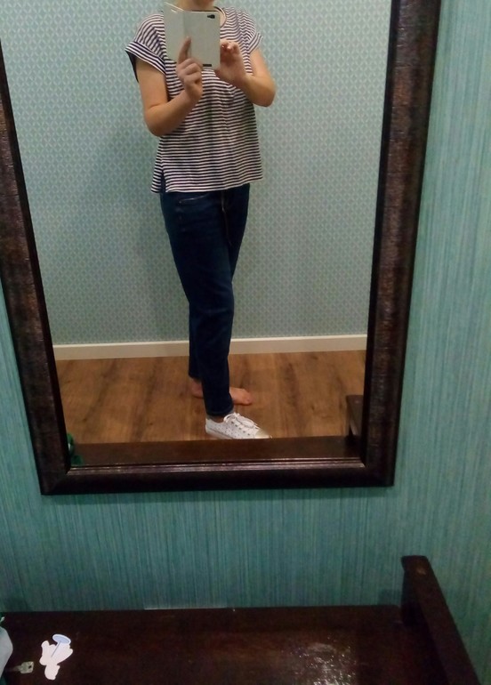 ДжинсыЗдравствуйте девочки-модницы! Помогите принять решение. Хочу джинсы на осень-зиму не драные, давно хотела бои, но фигура не под них( вот купила в спешке такие, "типа бойфренды".фото как смогла))) майка домашняя.
